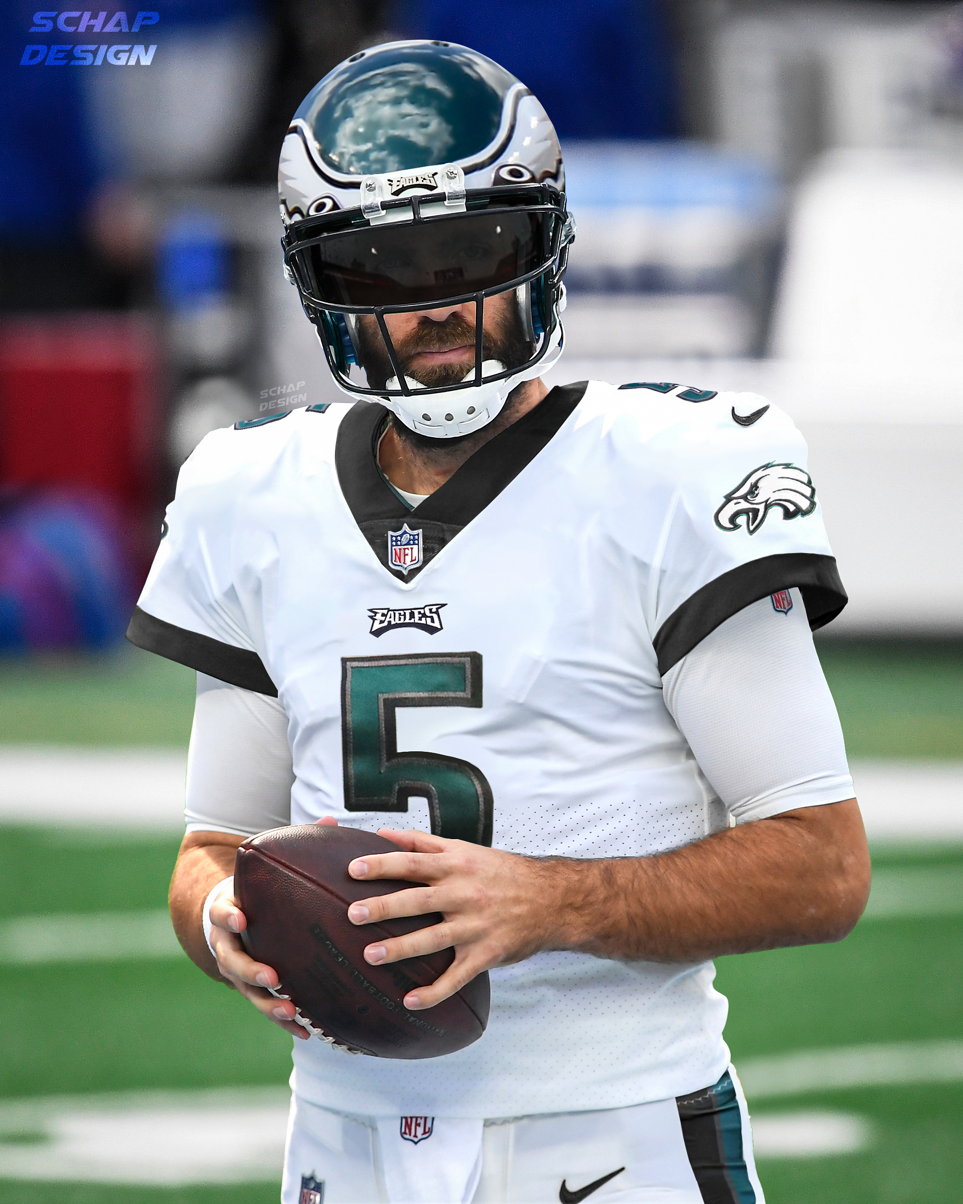 Joe Flacco with a visor (eagles jersey swap)